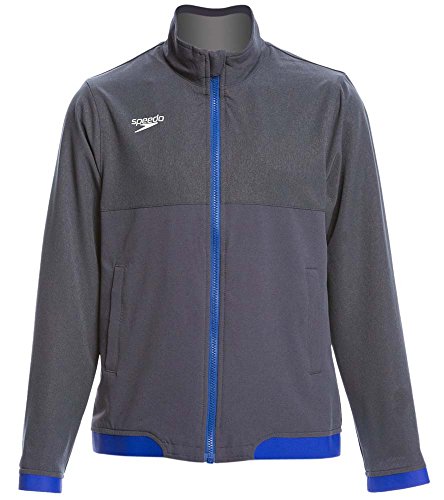 感じチャレンジの準備を進めるSpeedo若者Techウォームアップジャケット。特徴100 %のポリエステルで、バックベントと同様に発散、乾燥機能は、この涼しいジャケット最大は快適に、万能です。