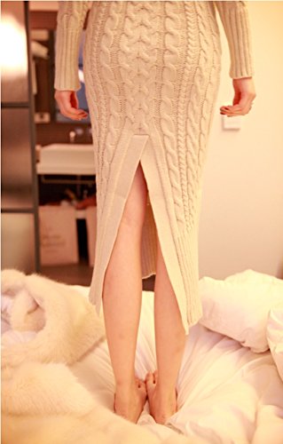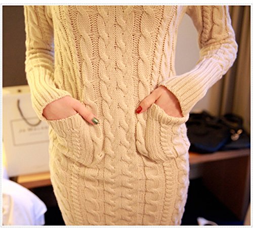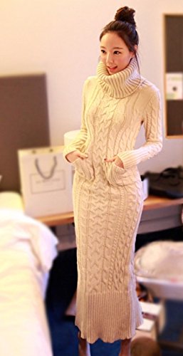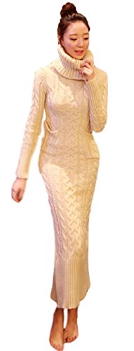 (スペース) spes タートルネック ニット ロング ワンピース ざっくり フィット レディースマキシ セーター レディース ケーブル編み タイト バックスリット 長袖 無地 ポケット ニットワンピ マキシ丈 ケーブル編 ロング丈 ワンピ レディースニットワンピース ハイネック beige ベージュ L