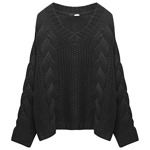 (スペース) spes ニット ザックリ ユッタリ ケーブル 編み 長 袖 セーター V ネック ユル フリー サイズ ローゲージ クロ 黒 black ブラック