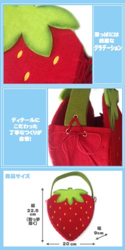 厚手のフェルトで作られたかわいいイチゴのバッグです。 お子様用としてももちろんですが、ディテールがしっかりしているので、お子様用としてだけでなく、イチゴのグッズを集めている方にもお勧めです。