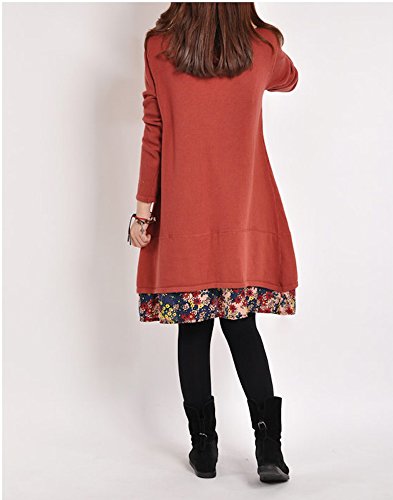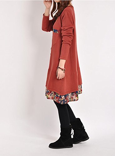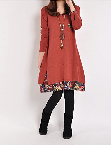 Spinas(スピナス)マタニティ ワンピース チュニック 2015 秋 冬 ニット 重ね着風 デザイン マタニティ ドレス☆ (M, レッド)