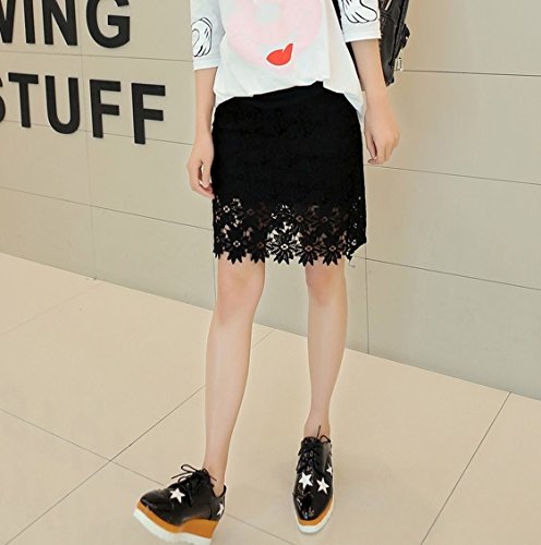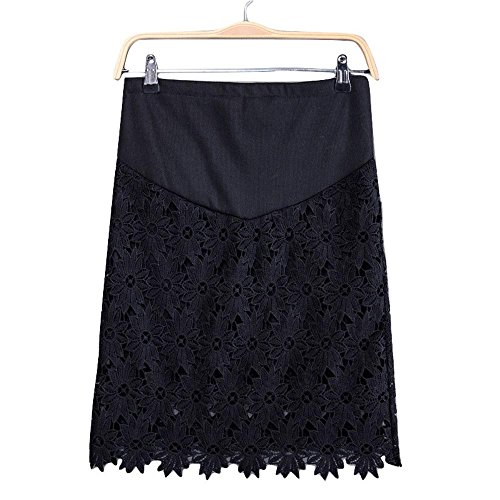 Spinas(スピナス) 春 夏 マタニティ スカート 花柄 レース フェミニン タイト ウエスト調節可 全2色 (ホワイト ブラック) (XL, ブラック)