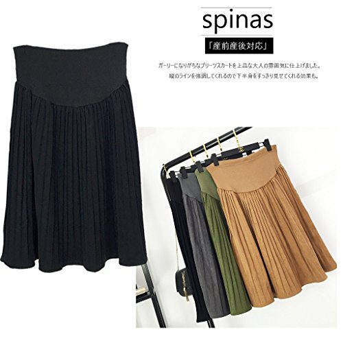 Spinas(スピナス) 今年の旬顔 マタニティ スエード調 膝丈 プリーツスカート 無地 フレアスカート 産前産後対応 妊婦服 全4色(ブラウン グレー グリーン ブラック)