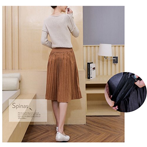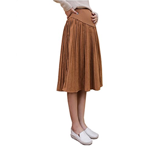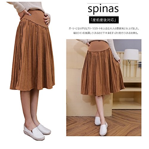 Spinas(スピナス) 今年の旬顔 マタニティ スエード調 膝丈 プリーツスカート 無地 フレアスカート 産前産後対応 妊婦服 全4色(ブラウン グレー グリーン ブラック)