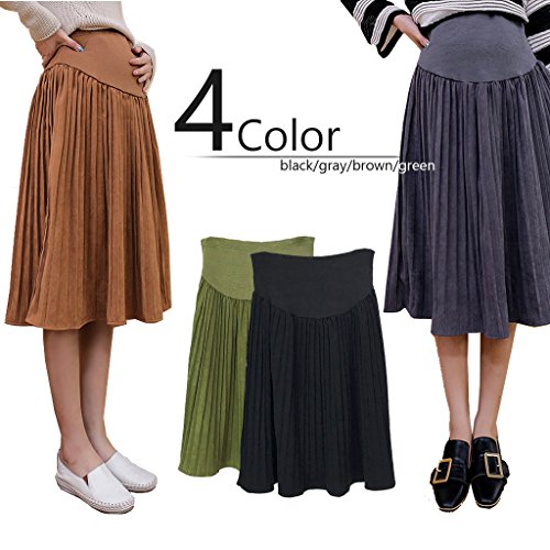 Spinas(スピナス) 今年の旬顔 マタニティ スエード調 膝丈 プリーツスカート 無地 フレアスカート 産前産後対応 妊婦服 全4色(ブラウン グレー グリーン ブラック)
