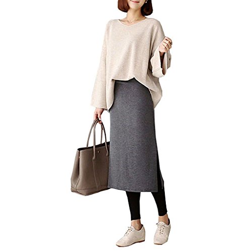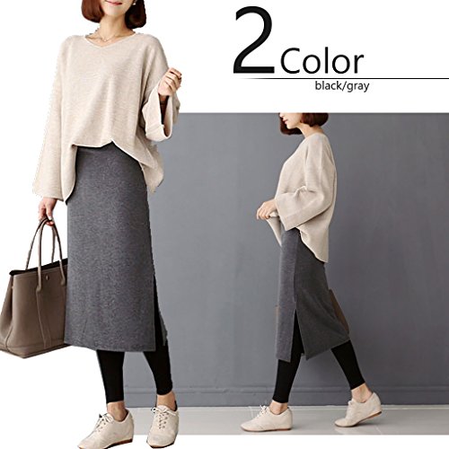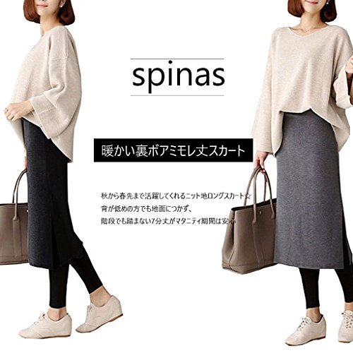 Spinas(スピナス) 秋から春先まで活躍してくれる 暖かい 裏起毛 マタニティ ミモレ丈スカート サイドスリット入り 無地 膝下丈 ひざ丈 スカート 全2色(ブラック グレー)