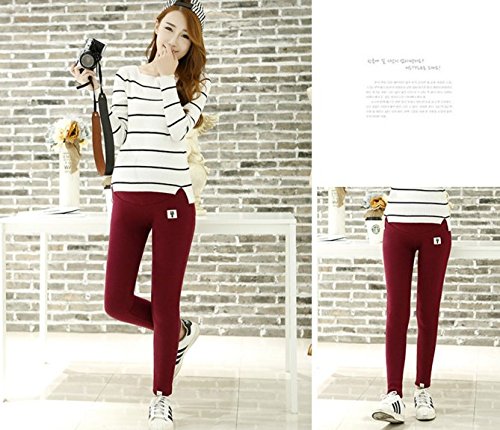 Spinas(スピナス) マタニティ 冬 レギンス パンツ 裏起毛 あったか 全5色 ブラック ライトグレー ネイビー ワインレッド ダークグレー (XL, ワインレッド)