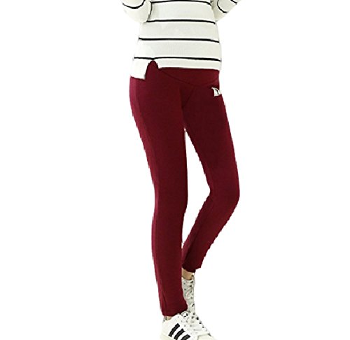 Spinas(スピナス) マタニティ 冬 レギンス パンツ 裏起毛 あったか 全5色 ブラック ライトグレー ネイビー ワインレッド ダークグレー (L, ワインレッド)