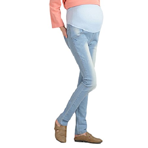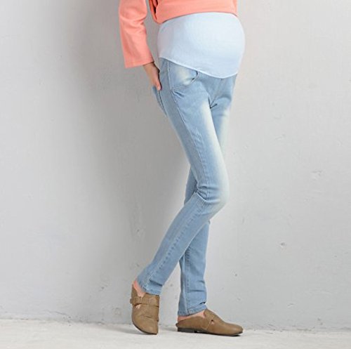 Spinas(スピナス) マタニティ デニム ジーンズ パンツ カジュアル 全5色 インディゴブルー ライトブルー グレー レトロブルー ブルー (L, ライトブルー)