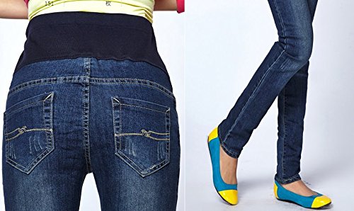 Spinas(スピナス) マタニティ デニム ジーンズ パンツ カジュアル 全5色 インディゴブルー ライトブルー グレー レトロブルー ブルー (XXL, インディゴブルー)