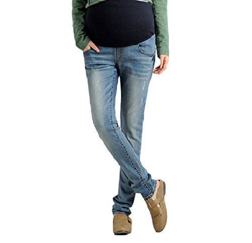 Spinas(スピナス) マタニティ デニム ジーンズ パンツ カジュアル 全5色 インディゴブルー ライトブルー グレー レトロブルー ブルー (L, レトロブルー)