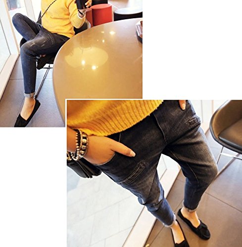 Spinas(スピナス) マタニティ デニム パンツ ダメージ加工 サルエル ジーンズ ヴィンテージ ウエストゴム 調節可 オールシーズン (ブルー) (XXL)