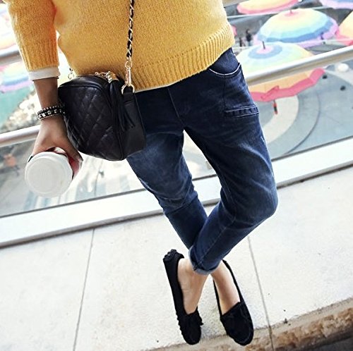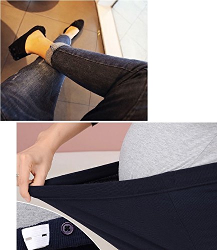 ★Spinas(スピナス) マタニティ デニム パンツ ダメージ加工 サルエル ジーンズ ヴィンテージ ウエストゴム 調節可 オールシーズン (ブルー)★