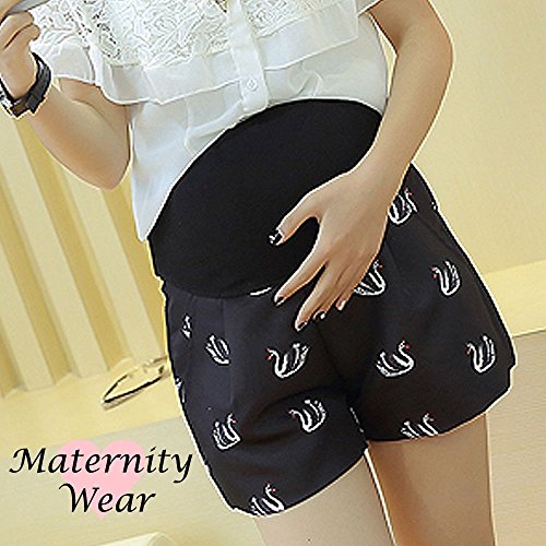 Spinas(スピナス) マタニティ ショートパンツ キュロット 夏 ハーフパンツ ボトム 腹巻 M L XL 全3色(マルチ ネイビー ブラック) (L, ブラック)