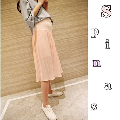 Spinas(スピナス) レディース マタニティ シフォン プリーツ 七分 スカウチョ 4Color 【ブラック グレー ピンク ホワイト】妊婦さんだっておしゃれを楽しみたい!妊娠初期から産後まで、長く使える1枚 (M, ピンク)