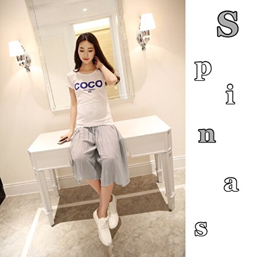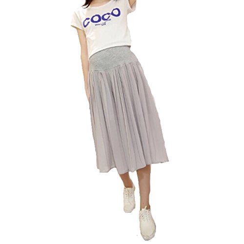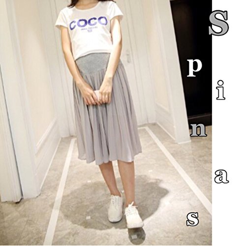 Spinas(スピナス) レディース マタニティ シフォン プリーツ 七分 スカウチョ 4Color 【ブラック グレー ピンク ホワイト】妊婦さんだっておしゃれを楽しみたい!妊娠初期から産後まで、長く使える1枚 (XL, グレー)