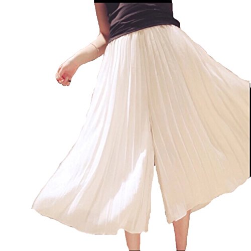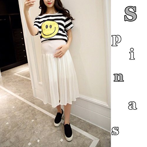 Spinas(スピナス) レディース マタニティ シフォン プリーツ 七分 スカウチョ 4Color 【ブラック グレー ピンク ホワイト】妊婦さんだっておしゃれを楽しみたい!妊娠初期から産後まで、長く使える1枚 (L, ホワイト)