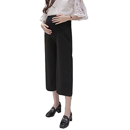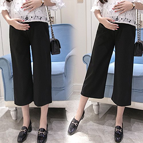 Spinas(スピナス)マタニティだからこそお腹の赤ちゃんと一緒に楽しめるリラックスコーデ 7分丈ワイドパンツ 臨月までおしゃれを楽しめる (M, ブラック)