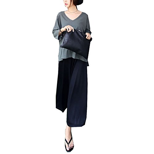 Spinas (スピナス) ゆったりリラックス 通気性に優れ、快適な履き心地となる9分丈パンツ 産前産後履けるトレンドのおしゃれガウチョパンツ (L, ブラック )
