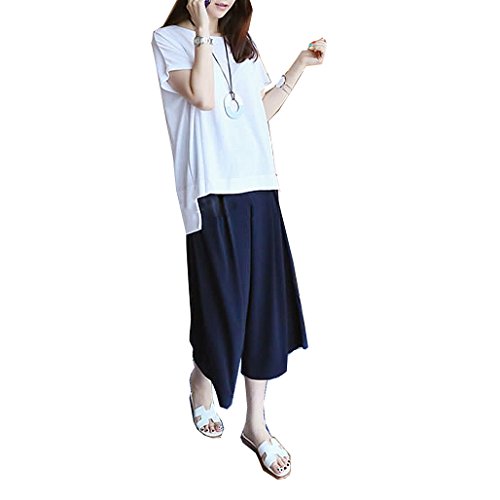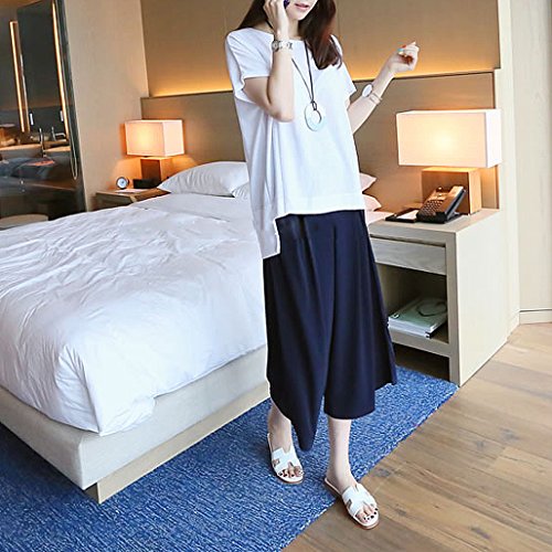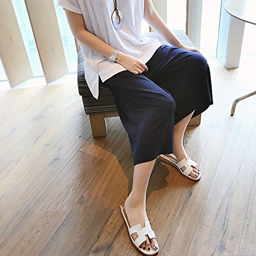 Spinas (スピナス) ゆったりリラックス 通気性に優れ、快適な履き心地となる9分丈パンツ 産前産後履けるトレンドのおしゃれガウチョパンツ (XXL, ネイビー)