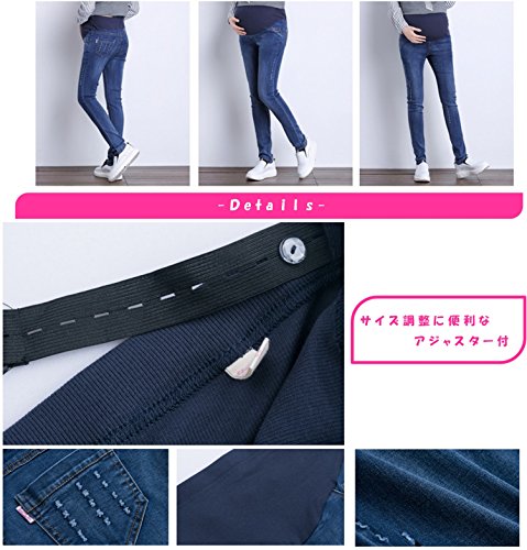 Spinas(スピナス) マタニティ デニム 妊娠中でもオシャレを楽しみたい! ウェア パンツ スキニ― ジーンズ ステッチ デザイン ヴィンテージ ウエストゴム 調節可 (ブルー) (L)