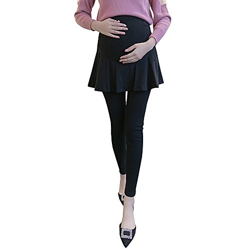 Spinas(スピナス) マタニティ フレア スカート付き ストレッチ レギンス 裏起毛 あり ナシ 選べます マタニティレギンス マタニティパンツ あったか 妊婦 産前 防寒 保温 ブラック グレー M~XL(ブラック(裏起毛あり)、L)