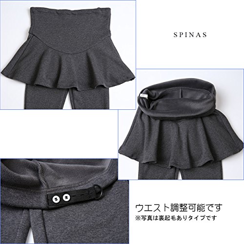 Spinas(スピナス) マタニティ フレア スカート付き ストレッチ レギンス 裏起毛 あり ナシ 選べます マタニティレギンス マタニティパンツ あったか 妊婦 産前 防寒 保温 ブラック グレー M~XL