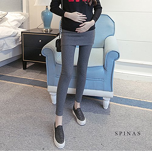 Spinas(スピナス) マタニティ あったか ミニ タイト スカート付き レギンス 裏起毛 あり ナシ 選べます ストレッチ マタニティレギンス マタニティパンツ ふわもこ ボア 妊婦 産前 産後 防寒 保温 ブラック グレー M~XL(グレー、M)