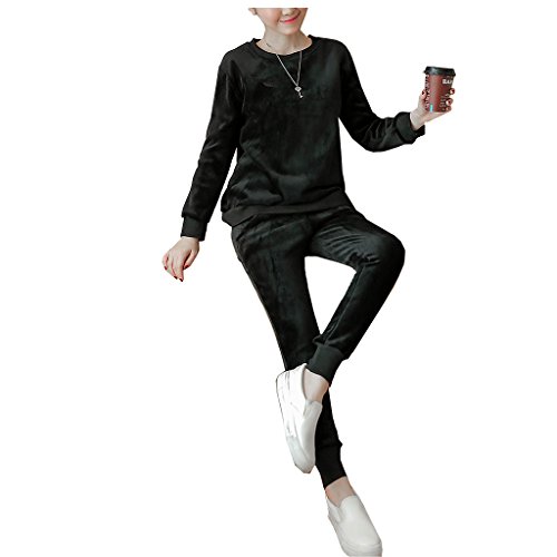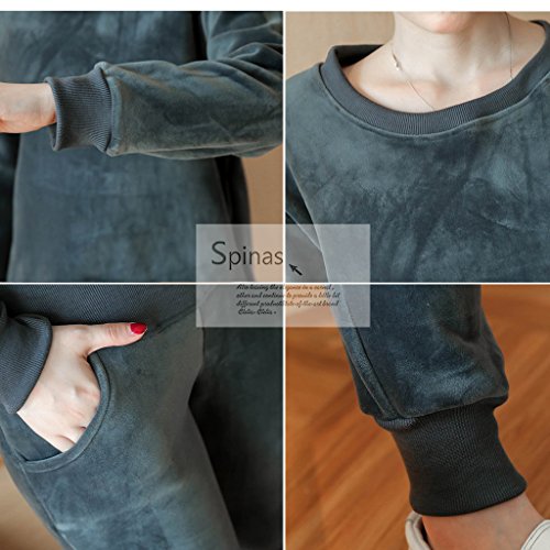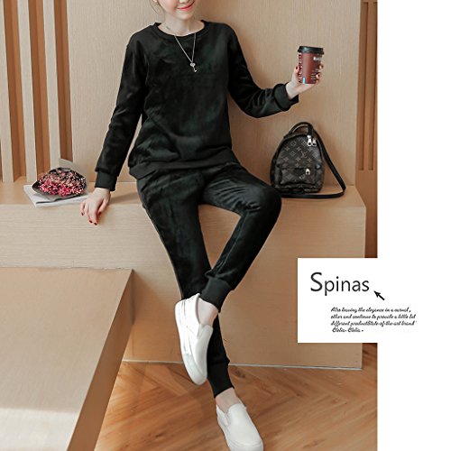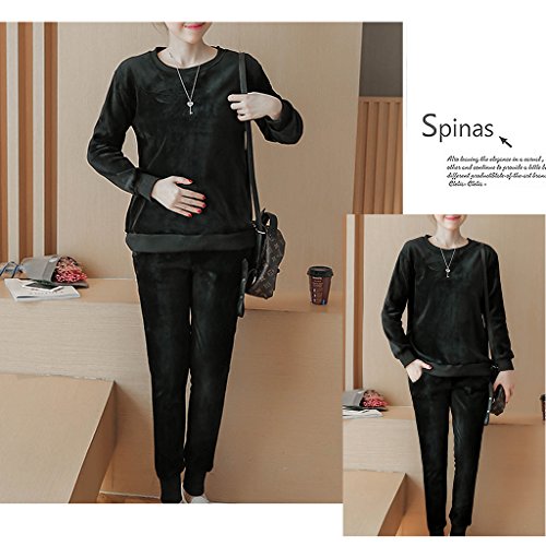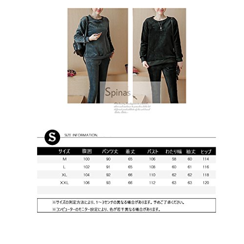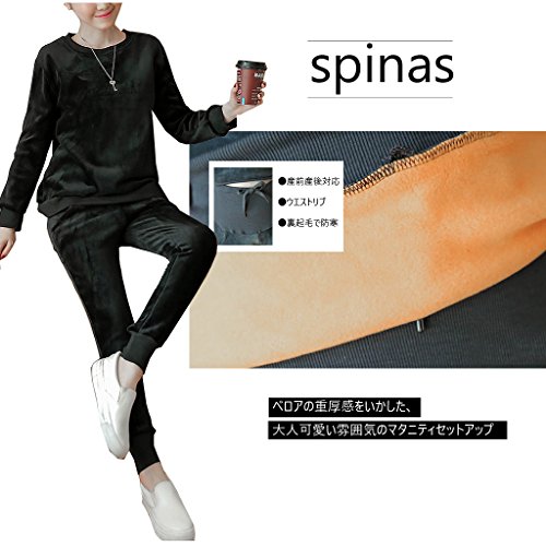 Spinas(スピナス) リラックスウェアやマタニティヨガにも ベロア トップス パンツ セット ルームウェア 部屋着 マタニティ 裏起毛 防寒 長袖ベロア2点セット 全2色(ブラック グレー)