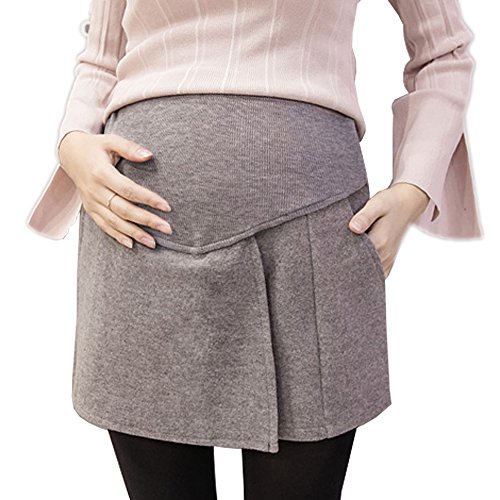 Spinas(スピナス) マタニティ スカート 風 ショート パンツ スカートに見えるショートパンツ キュロット マタニティパンツ 妊婦 産前 ブラック ライトグレー ダークグレー M~XXL (ライトグレー、M)