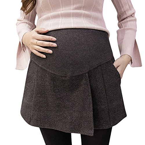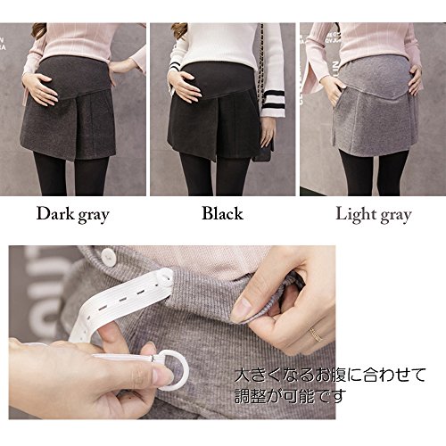Spinas(スピナス) マタニティ スカート 風 ショート パンツ スカートに見えるショートパンツ キュロット マタニティパンツ 妊婦 産前 ブラック ライトグレー ダークグレー M~XXL (ダークグレー、L)