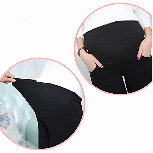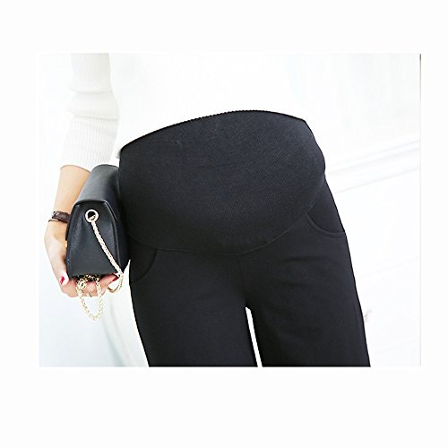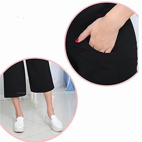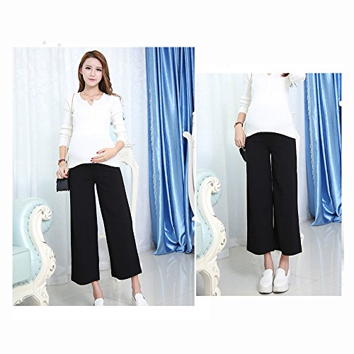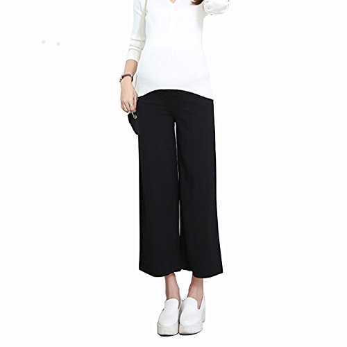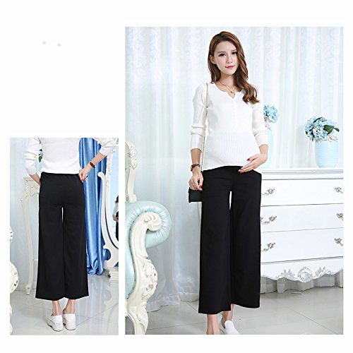 Spinas(スピナス) マタニティ ワイド パンツ 9分丈 ポケット付き ガウチョ 黒(L)