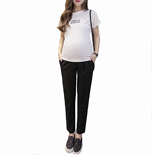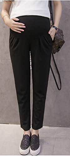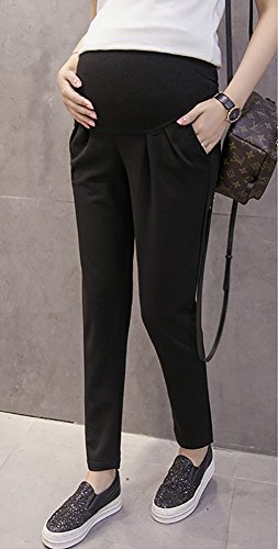 Spinas(スピナス) マタニティ レディース アンクル 9分丈 くるぶし丈 パンツ 後期まで着用できる くるぶし丈 オールシーズン 全2色(ブラック グレー)4サイズ展開 (M, ブラック)