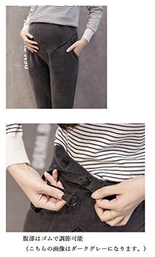 Spinas(スピナス) マタニティ レディース 裏起毛 あたたかい ベロア リブ パンツ アンクル 9分丈 くるぶし丈 パンツ 後期まで着用できる 秋 冬 全2色(ダークグレー/ブラック )