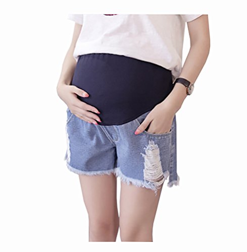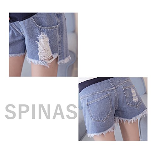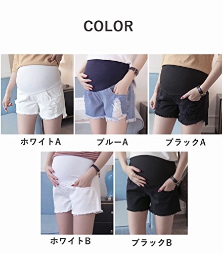 Spinas (スピナス) マタニティ レディース デニム ショート パンツ ダメージ 加工 切りっぱなし 短パン ウエスト 調節可 後期 まで 着用できる 全5種(ホワイトA/ホワイトB/ブラックA/ブラックB/ブルーA)