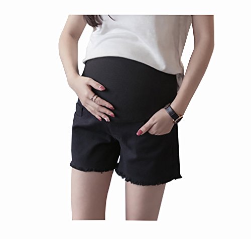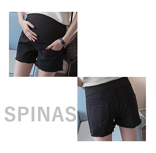Spinas (スピナス) マタニティ レディース デニム ショート パンツ ダメージ 加工 切りっぱなし 短パン ウエスト 調節可 後期 まで 着用できる 全5種(ホワイトA/ホワイトB/ブラックA/ブラックB/ブルーA)