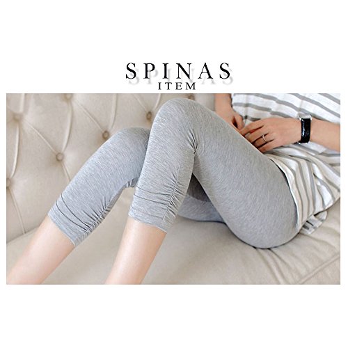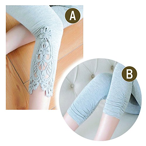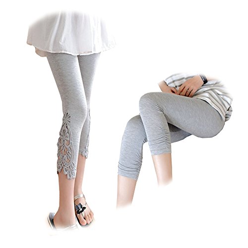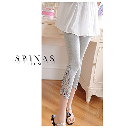 Spinas(スピナス) 2枚セット 肌触りなめらか レギンス マタニティ お花レース柄 くしゅくしゅ 7分丈 全2色(ブラック、グレー) (L, グレー)