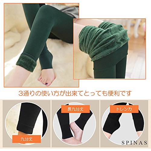Spinas(スピナス) マタニティ レギンス 裏起毛 暖かくて 柔らかい 素材 トレンカ サイズ 調整 できます あったか ふわふわ 妊婦 産前 防寒 保温 選べる5カラー (グリーン)