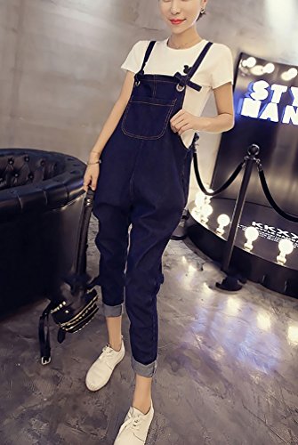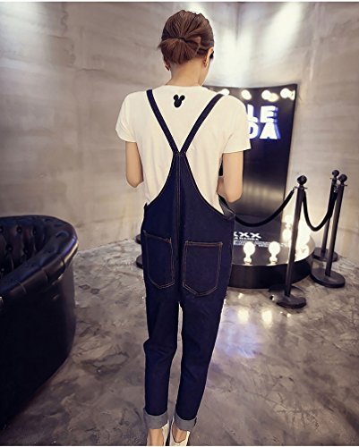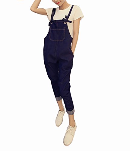 Spinas (スピナス) マタニティ レディース きれいめ スタイル デニム サロペット オーバーオール 前ポケット ジーンズ インディゴ