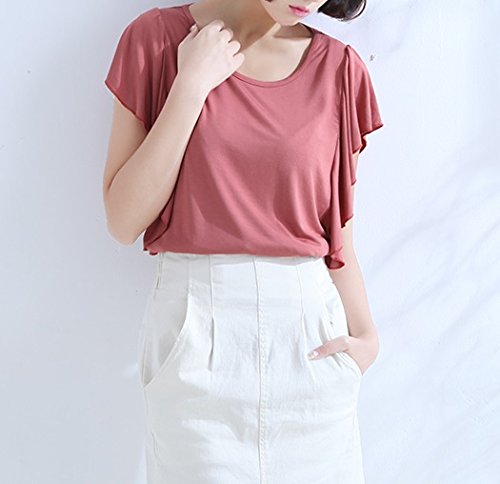 Spinas(スピナス) マタニティ 授乳服 カットソー 袖フリル バタフライスリーブ フェミニン 産後 兼用 春 夏 全3色 (グレー スイカレッド ワインレッド) (M, ワインレッド)