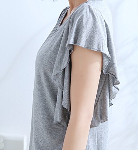 ★Spinas(スピナス) マタニティ 授乳服 カットソー 袖フリル バタフライスリーブ フェミニン 産後 兼用 春 夏 全3色 (グレー スイカレッド ワインレッド)★