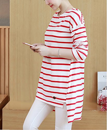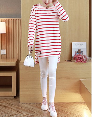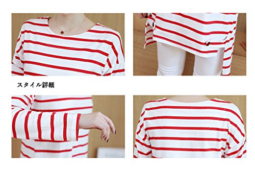 Spinas (スピナス) マタニティ レディース 裾のボタンが アクセント ボーダー しましま カットソー チュニック ロンT長袖 全2色 (レッド/ネイビー)