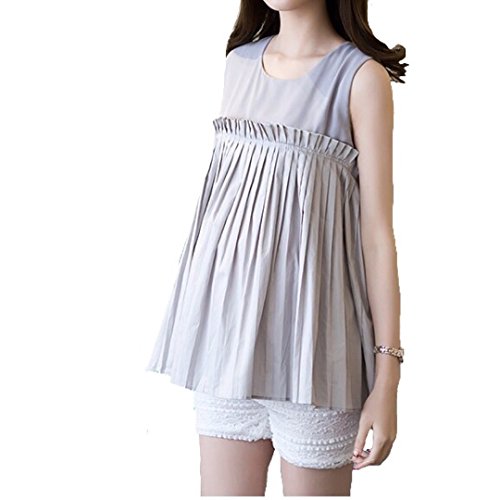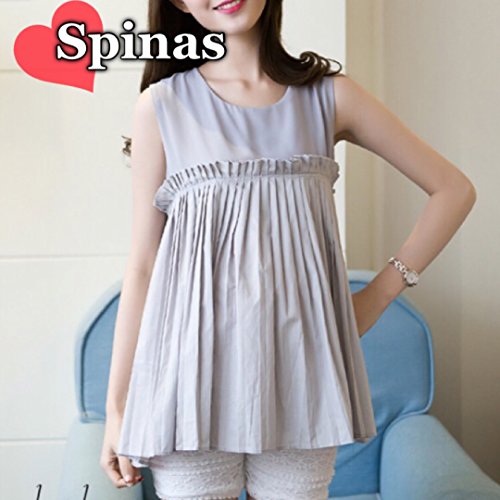 Spinas(スピナス) レディース マタニティ ギャザー フレア ノースリーブ トップス 全2色【グレー レッド】 やわらかなAラインは産後まで着れるキレイシルエット (L, グレー)