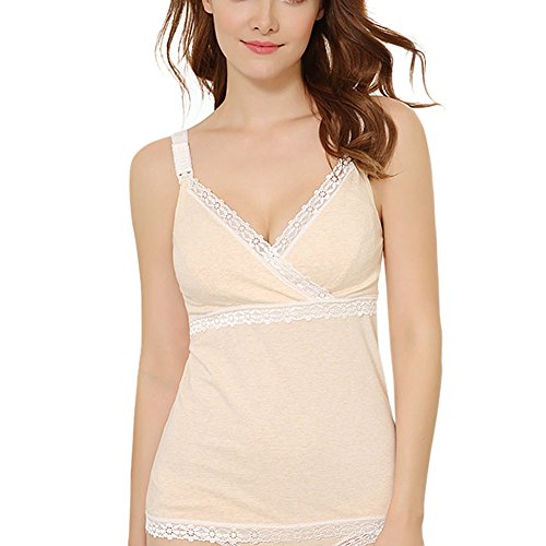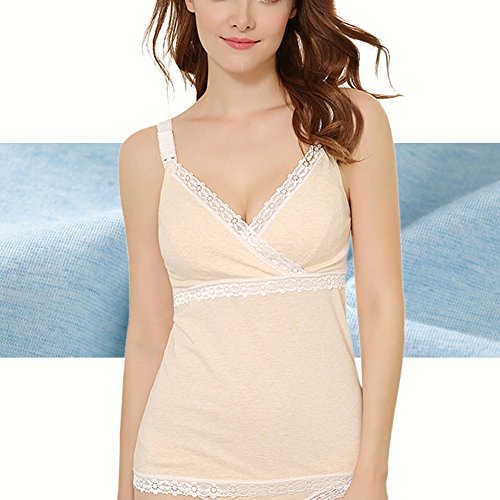 Spinas(スピナス) 授乳 キャミソール 産後 用 インナー クロス オープン ストラップ オープン パッド付 下着 肌着 産後用 マタニティ 5色 (アプリコット、L)