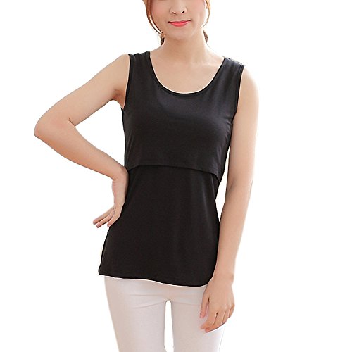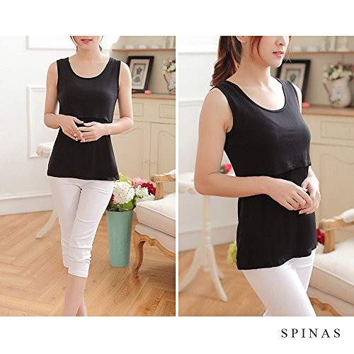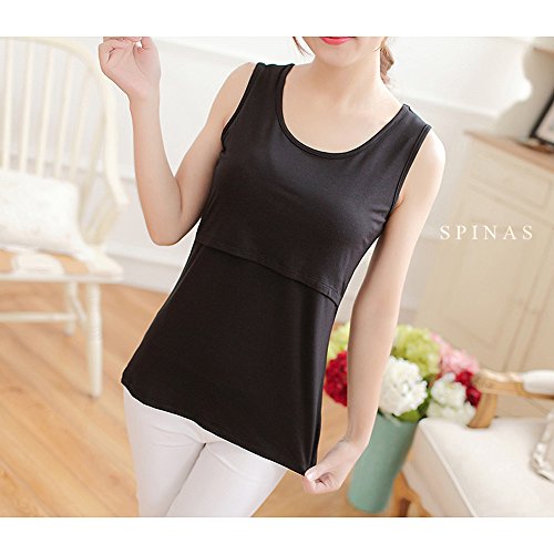 Spinas(スピナス) 授乳服 トップス タンクトップ シンプル 無地 ルームウェア 産後 用 インナー 長め丈 産後用 授乳口 クロスオープン 4カラー (ブラック、XL)