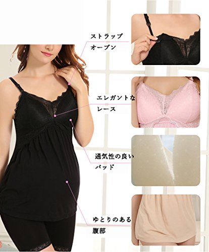 Spinas (スピナス) マタニティ インナー 下着 レースがカワイイ 授乳 キャミソール パッド一体型 キャミ ブラトップ 産前 産後 全4色(ホワイト/ピンク/ベージュ/ブラック)