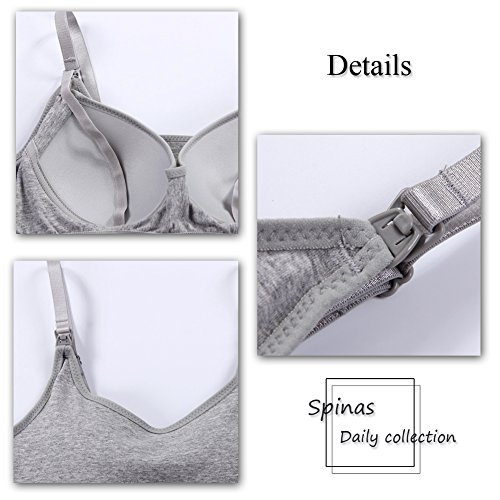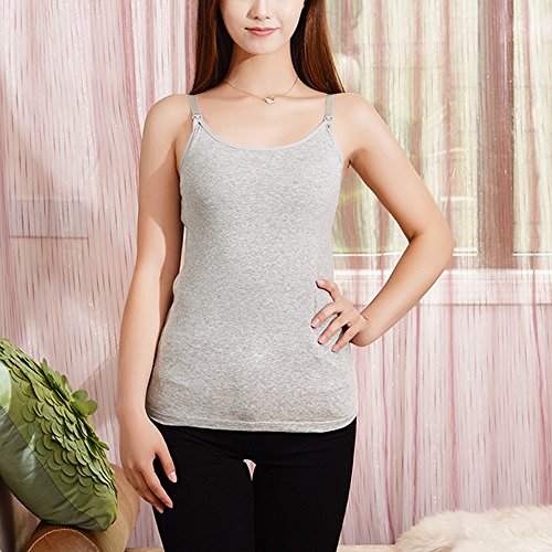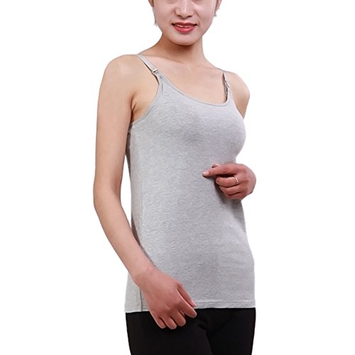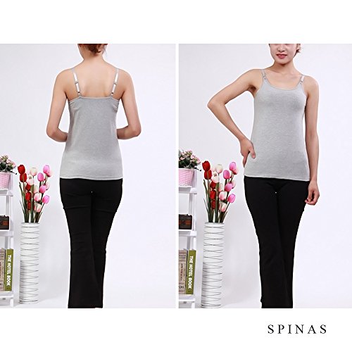 Spinas(スピナス) 授乳服 授乳口付き タンクトップ 無地 ボーダー シンプル ストラップオープン 産後 用 インナー 産後用 授乳口 5カラー (グレー、L)