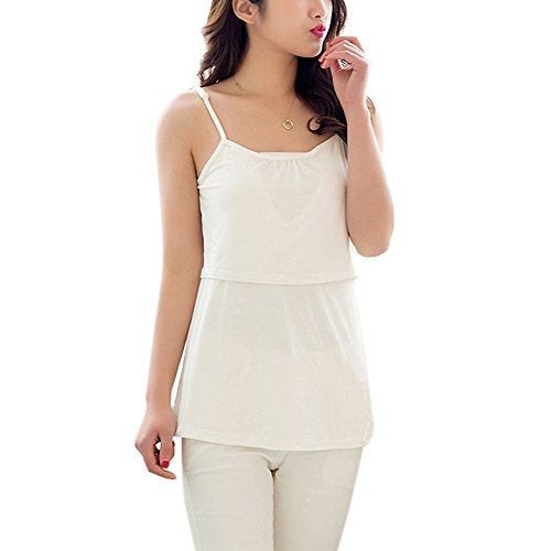 Spinas(スピナス) 授乳服 授乳口付き キャミソール シンプル 無地 ルームウェア 産後 用 インナー 長め丈 産後用 授乳口 クロスオープン 3カラー (ホワイト、XXL)
