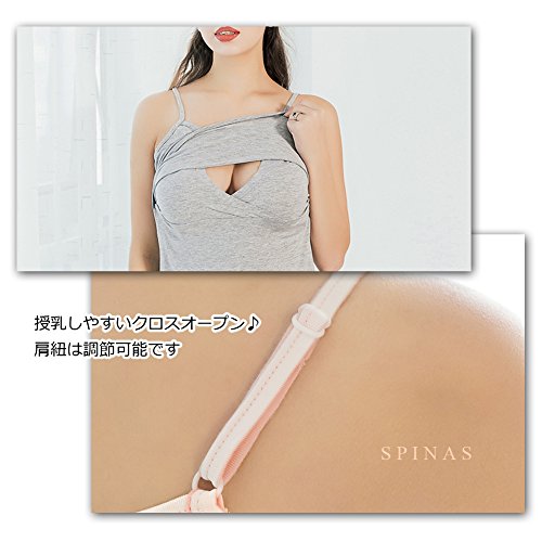 Spinas(スピナス) 授乳服 授乳口付き キャミソール シンプル 無地 ルームウェア 産後 用 インナー 長め丈 産後用 授乳口 クロスオープン 3カラー