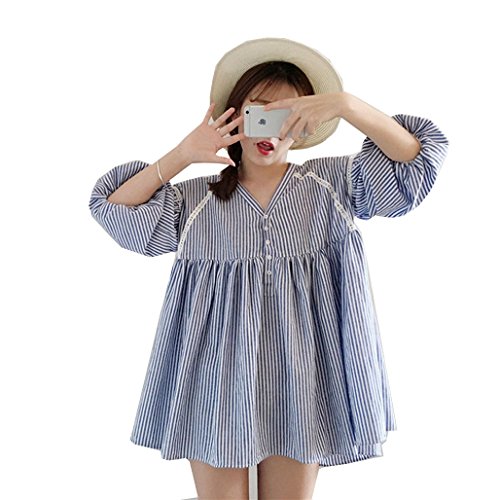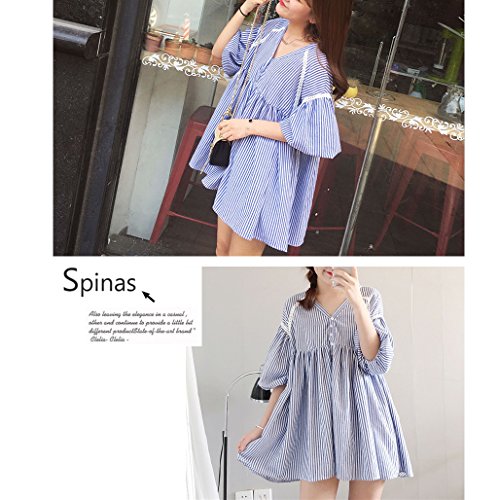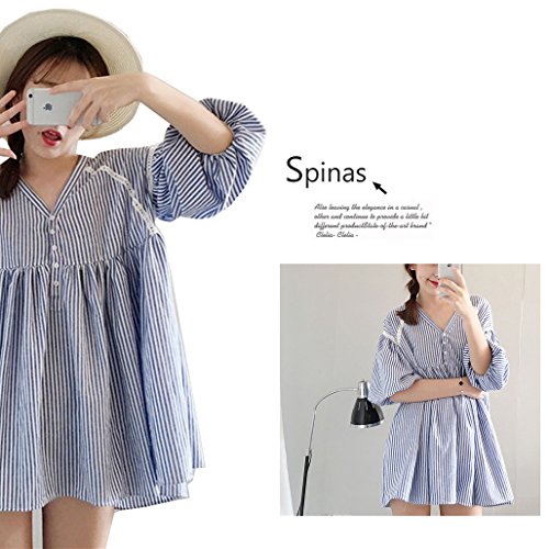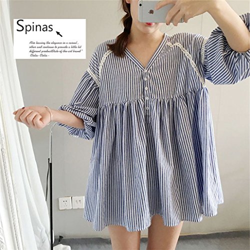 Spinas (スピナス) マタニティウェア ふんわりその姿に惚れ、バルーンスリーブフレアブラウス (ストライプ)